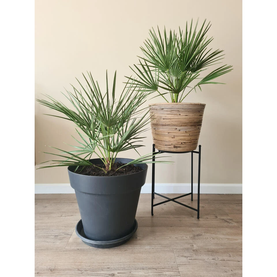 Let op: ben je van plan om de palm binnen te zetten? Plaats deze dan in een pot die minimaal 20% groter is en plaats daarbij een watergeefsysteem (met vulcastrat en een watermeter).