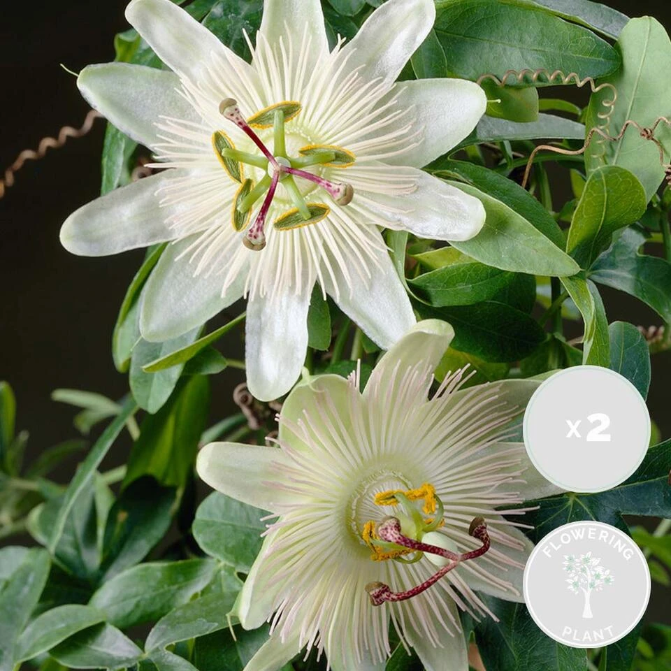 De Passiflora caerulea ‘Constance Elliot’ is een onderhoudsvriendelijke klimplant met de mooiste ivoorwitte passiebloemen. De passiebloem komt van origine uit Zuid-Amerika, maar nu kan je ook deze tropische sferen in eigen tuin creëren. Naast dat deze passiebloem prachtig bloeit, vraagt deze plant ook weinig onderhoud. De Passiflora caerulea ‘Constance Elliot’ houdt van een zonnig plekje en groeit dan ook uitbundiger dan wanneer deze in de schaduw staat.