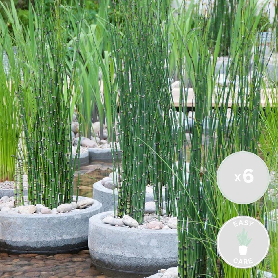 Voeg wat groen toe aan jouw vijver met de Equisetum Japonicum. Deze onderhoudsvriendelijke vijverplant is onder de meeste ook wel bekend als Japanse Holpijp. Hij valt op door zijn groene stengels met zwarte ringen en geeft een blijvend groen beeld in jouw vijver. Naast dat hij onderhoudsvriendelijk is, kan hij ook goed tegen de kou en dus ook goed winterhard. Niet alleen houdt hij van natte voeten en kan je hem dus goed plaatsen in zone 2 en/of 3 in jouw vijver.