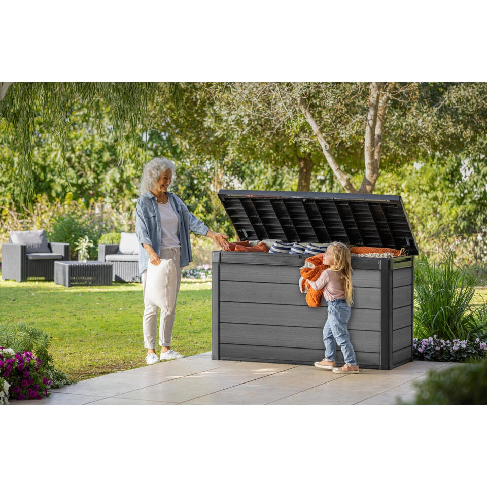 - De royale opbergbox biedt voldoende ruimte voor tuinspullen, kussens of andere voorwerpen