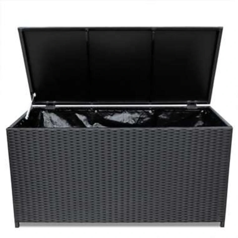 Deze poly rattan opslagkist kan gebruikt worden voor het bewaren van tuinkussens, kussens, extra dekens of handdoeken en andere huishoudelijke spulletjes.